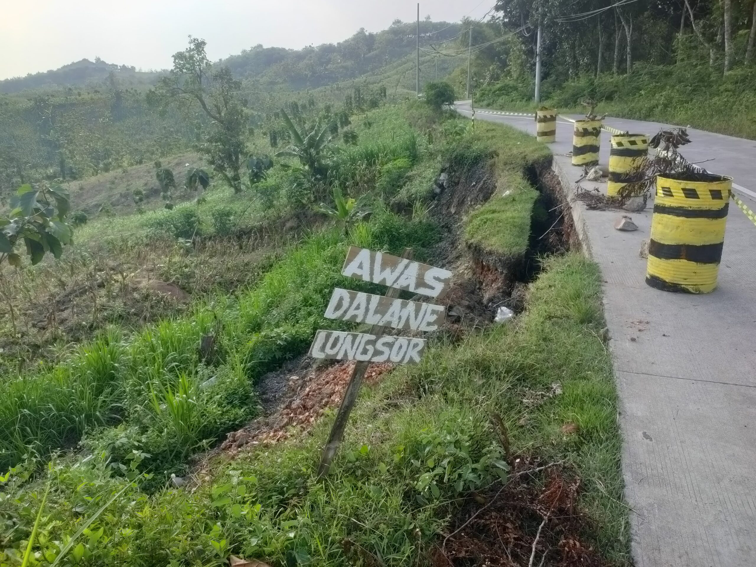 “Kami telah menerjunkan personel untuk memastikan kondisi di lapangan. Saat ini, di lokasi longsor sudah dipasang tanda pembatas menggunakan drum. Selain itu, dari arah utara maupun selatan juga telah kami pasang baner imbauan agar pengendara lebih berhati-hati,” ujar AKP Gembong Widodo.