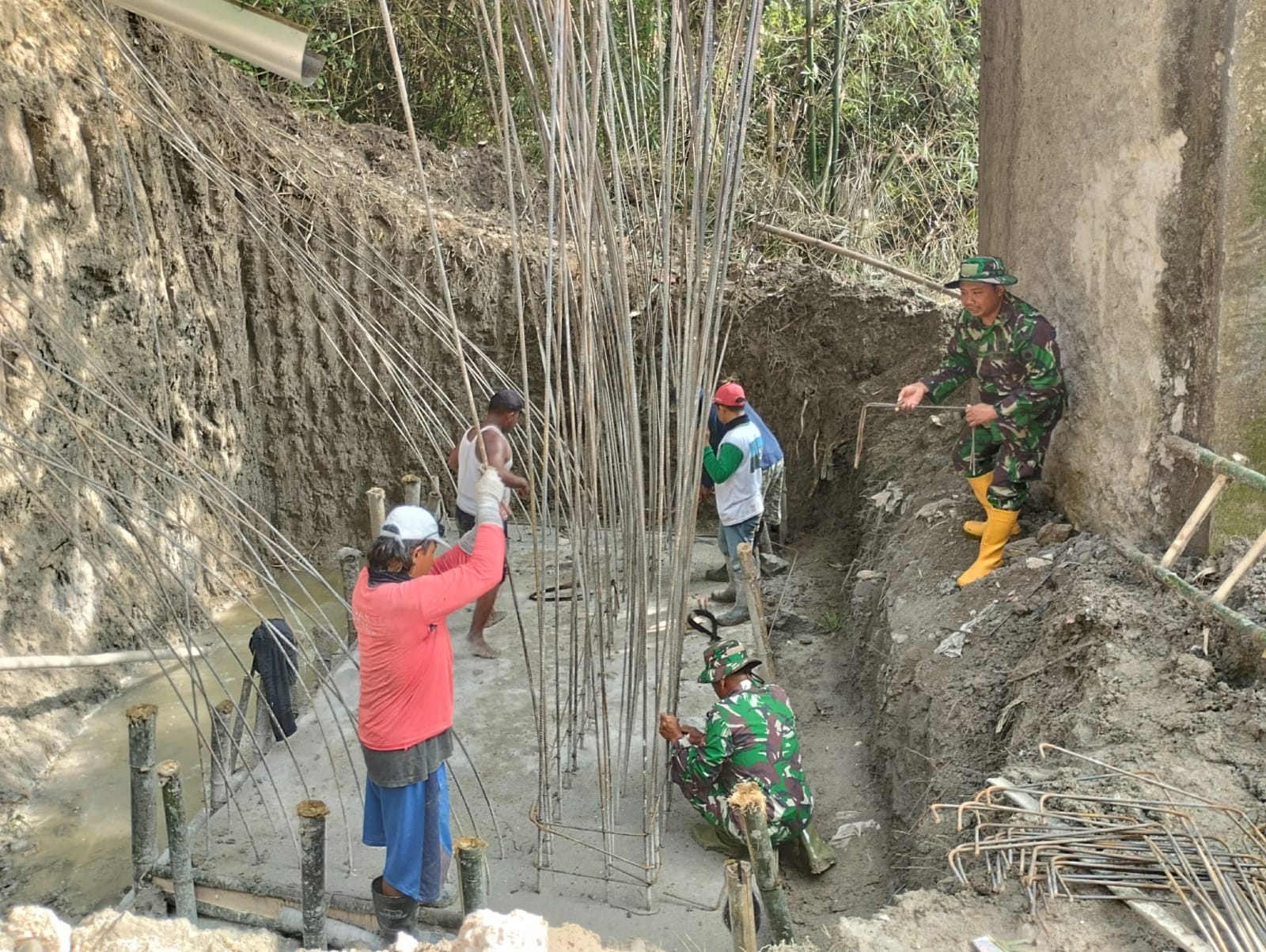 BLORA, – Personel Koramil 11/Jati, Kodim 0721/Blora, bersama masyarakat Desa Jati, Kecamatan Jati, terus mempercepat pembangunan Jembatan Garuda yang melintasi Sungai Dukuh Jati, Minggu (5/4/2026).